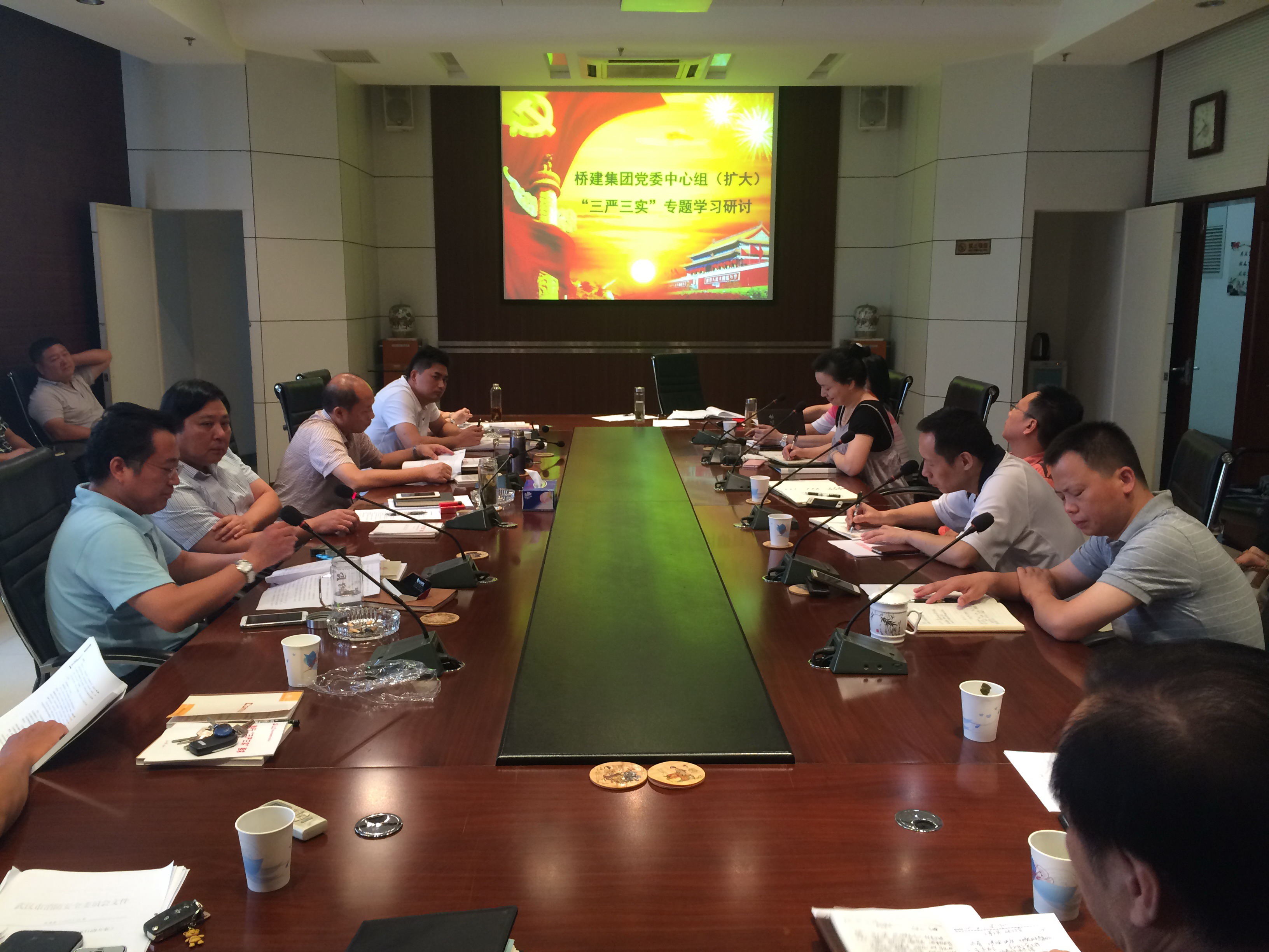 2015年8月1日上午9時(shí),公司在1501會(huì)議室召開(kāi)“三嚴(yán)三實(shí)”專(zhuān)題教育黨委中心組(擴(kuò)大)第二次專(zhuān)題學(xué)習(xí)會(huì),圍繞嚴(yán)以修身、加強(qiáng)黨性修養(yǎng),堅(jiān)定理想信念,把牢思想和行動(dòng)“總開(kāi)關(guān)”主題開(kāi)展學(xué)習(xí)研討。公司黨委班子成員,中層副職以上干部及子公司領(lǐng)導(dǎo)班子成員參加學(xué)習(xí)。