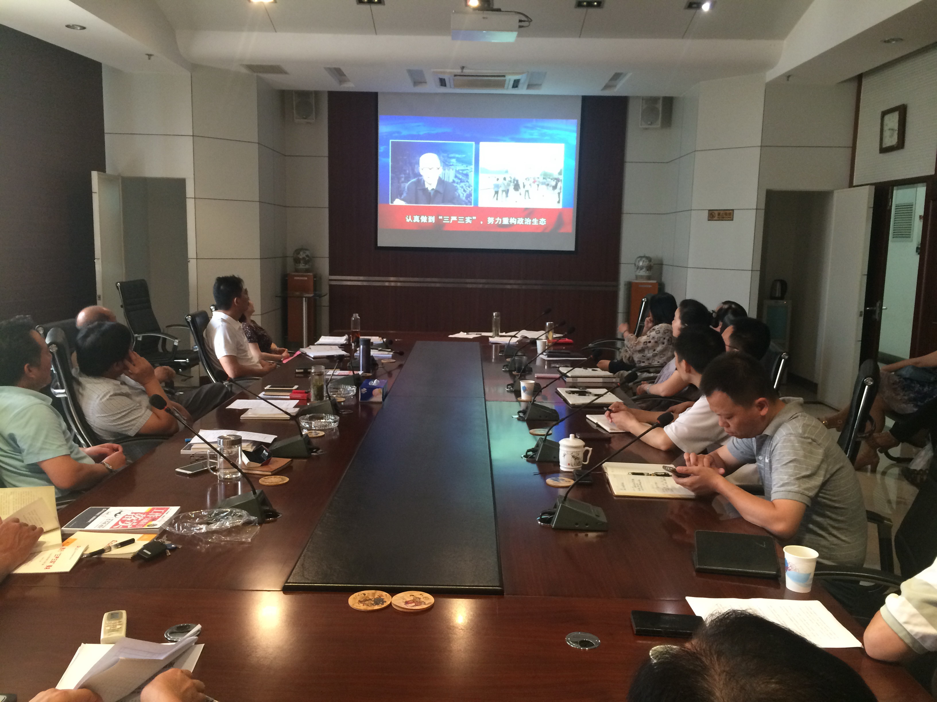 會(huì)議首先集中觀看了中央黨校機(jī)關(guān)黨委原副書(shū)記薛鑫良教授做的《認(rèn)真做到“三嚴(yán)三實(shí)”,努力重構(gòu)政治生態(tài)》視頻講座。講座從“三嚴(yán)三實(shí)”的內(nèi)涵和要求、核心和關(guān)鍵、現(xiàn)實(shí)針對(duì)性和指導(dǎo)意義、與重構(gòu)政治生態(tài)的關(guān)系等四方面作了精辟講解,內(nèi)容豐富、事例典型,分析透徹、發(fā)人深省,對(duì)于準(zhǔn)確把握“三嚴(yán)三實(shí)”的精神實(shí)質(zhì)和內(nèi)涵具有極強(qiáng)的指導(dǎo)作用。