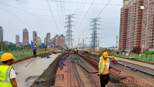 項(xiàng)目全長2.78公里,其中2.3公里范圍處于220KV高壓電力走廊下方,幾乎無現(xiàn)成的施工段面,但項(xiàng)目建設(shè)時間緊、任務(wù)重,一刻也不能耽誤,面對這種局面,有條件要上,沒有條件創(chuàng)造條件也要上。經(jīng)項(xiàng)目管理團(tuán)隊(duì)研究,積極協(xié)調(diào)市城建局及市供電公司,最終在全線電力走廊下方設(shè)置電力防護(hù)措施,并與市供電公司聯(lián)合建立巡視值守制度,同時加強(qiáng)施工人員安全教育培訓(xùn),確保在安全可控的情況下,多點(diǎn)開花推進(jìn)工程建設(shè)。