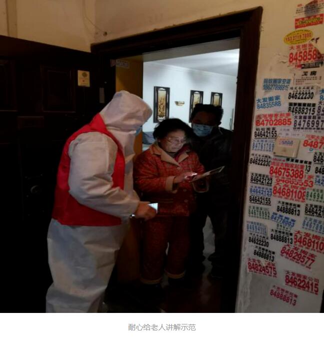“掃樓”是個(gè)辛苦活,也是個(gè)細(xì)致活。為了確保每家每戶知曉并掌握微信健康碼操作,幫扶人員不僅要逐棟逐戶門(mén)口張貼健康碼公告,還要敲門(mén)入戶一個(gè)個(gè)進(jìn)行宣傳,指導(dǎo)“掃碼”操作并作好登記。隊(duì)員黃衛(wèi)對(duì)此深有感觸:“梅巖村是個(gè)老小區(qū),很多居民年齡偏大,我們往往一頓爬樓還沒(méi)時(shí)間喘口氣,又得手把手教他們操作,有些反應(yīng)較慢或者聽(tīng)力差的甚至要一遍遍示范。” 梅巖村是個(gè)拆遷小區(qū),不少門(mén)棟只有1-2戶人家,有時(shí)爬一棟樓只能完成一戶家庭的健康碼登記,可以說(shuō)是費(fèi)力不討好,但下沉人員從不因人少而“偷工減料”,堅(jiān)持戶戶上門(mén)。由于現(xiàn)有居民大部分和戶口不一致,幫扶人員就一個(gè)個(gè)仔細(xì)核對(duì),確保不漏一人。有些獨(dú)居老人沒(méi)有智能手機(jī),就認(rèn)真做好登記,報(bào)給社區(qū)統(tǒng)一處理。個(gè)別住戶防范意識(shí)較強(qiáng),不愿意開(kāi)門(mén),下沉人員就想辦法隔門(mén)進(jìn)行講解。由于防盜門(mén)有隔音效果,交流起來(lái)很費(fèi)勁,隊(duì)員段凡開(kāi)玩笑說(shuō):“遇到這種情況,對(duì)話只能靠猜,講解只能靠吼?!?在大家的共同努力下,兩天下來(lái),順利完成 72戶,180人的健康碼登記和特殊關(guān)照5類(lèi)人員統(tǒng)計(jì)工作,其中35位老人無(wú)微信,已做好登記交社區(qū)處理。