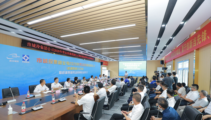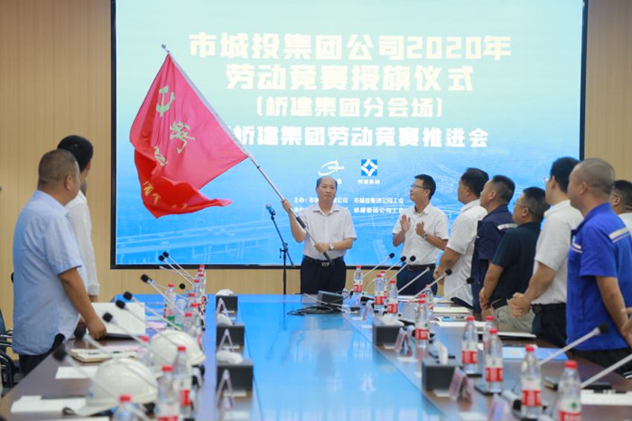 2020年8月12日下午,城投集團(tuán)公司2020年勞動(dòng)競(jìng)賽授旗儀式(橋建集團(tuán)分會(huì)場(chǎng))暨橋建集團(tuán)2020年勞動(dòng)競(jìng)賽推進(jìn)會(huì)在橋建集團(tuán)代建的“兩湖隧道”東湖段現(xiàn)場(chǎng)項(xiàng)目部舉行。城投集團(tuán)副總經(jīng)理盛華同志出席活動(dòng)并為橋建集團(tuán)授旗。