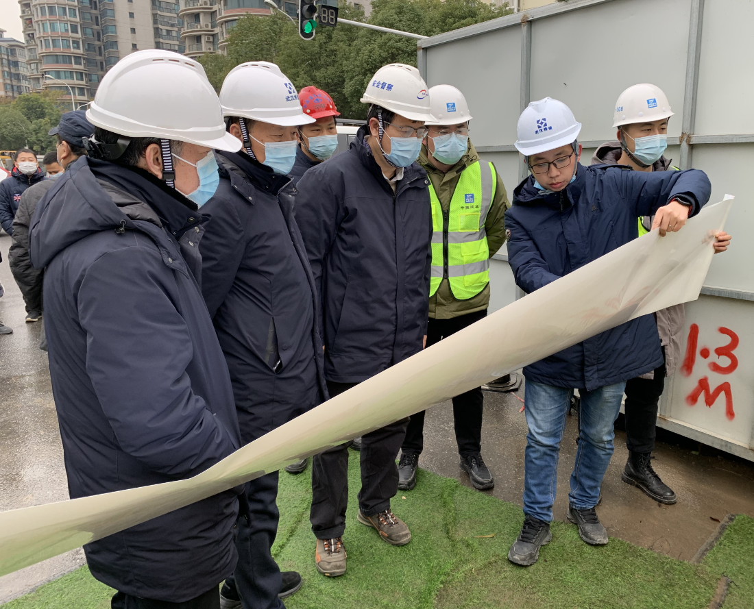 2020年12月18日上午,市城投集團公司紀委書記榮鞏在我公司董事長朱明剛的陪同下實地調研沙湖大道跨徐東大街立交工程。