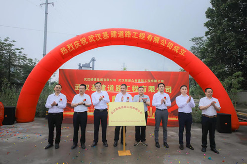 2022年5月20日上午,武漢基建道路工程有限公司在青山生產基地舉行揭牌儀式,橋建集團董事長艾詩明、總經(jīng)理梅建松及經(jīng)理班子、各部門負責人、子公司負責人參加儀式。