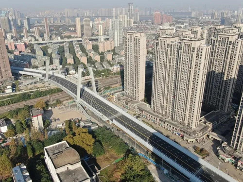 建安街(白沙洲大道—南湖路)工程在項(xiàng)目建設(shè)過(guò)程中,遇到大量征地拆遷、管線遷改等影響施工進(jìn)展的“攔路虎”,項(xiàng)目在市城建局及洪山區(qū)的大力支持和指導(dǎo)下,通過(guò)組織協(xié)調(diào)、攻堅(jiān)克難,及時(shí)有效地解決問(wèn)題,為項(xiàng)目建設(shè)提供了有力保障。2021年8月17日、18日建安街上跨鐵路橋東主塔墩梁體 6#、7#墩轉(zhuǎn)體到位,在空中成功“牽手”,8月30 日主體結(jié)構(gòu)全線貫通,10月19日完成瀝青攤鋪。