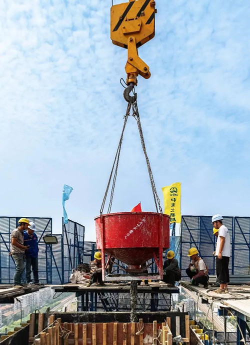 ▲主塔封頂澆筑施工現(xiàn)場(chǎng) 攝影 黃蕾