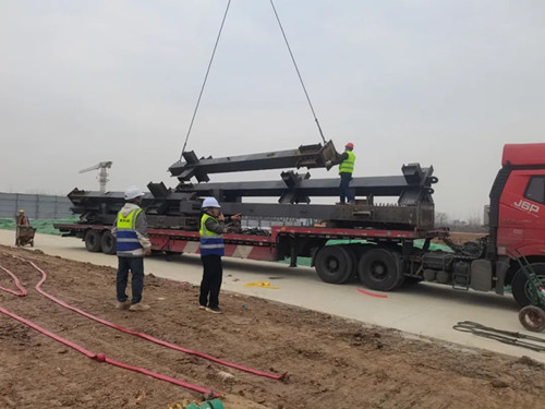 在專業(yè)操作人員的精準操控下,鋼柱平穩(wěn)升起,準確就位。