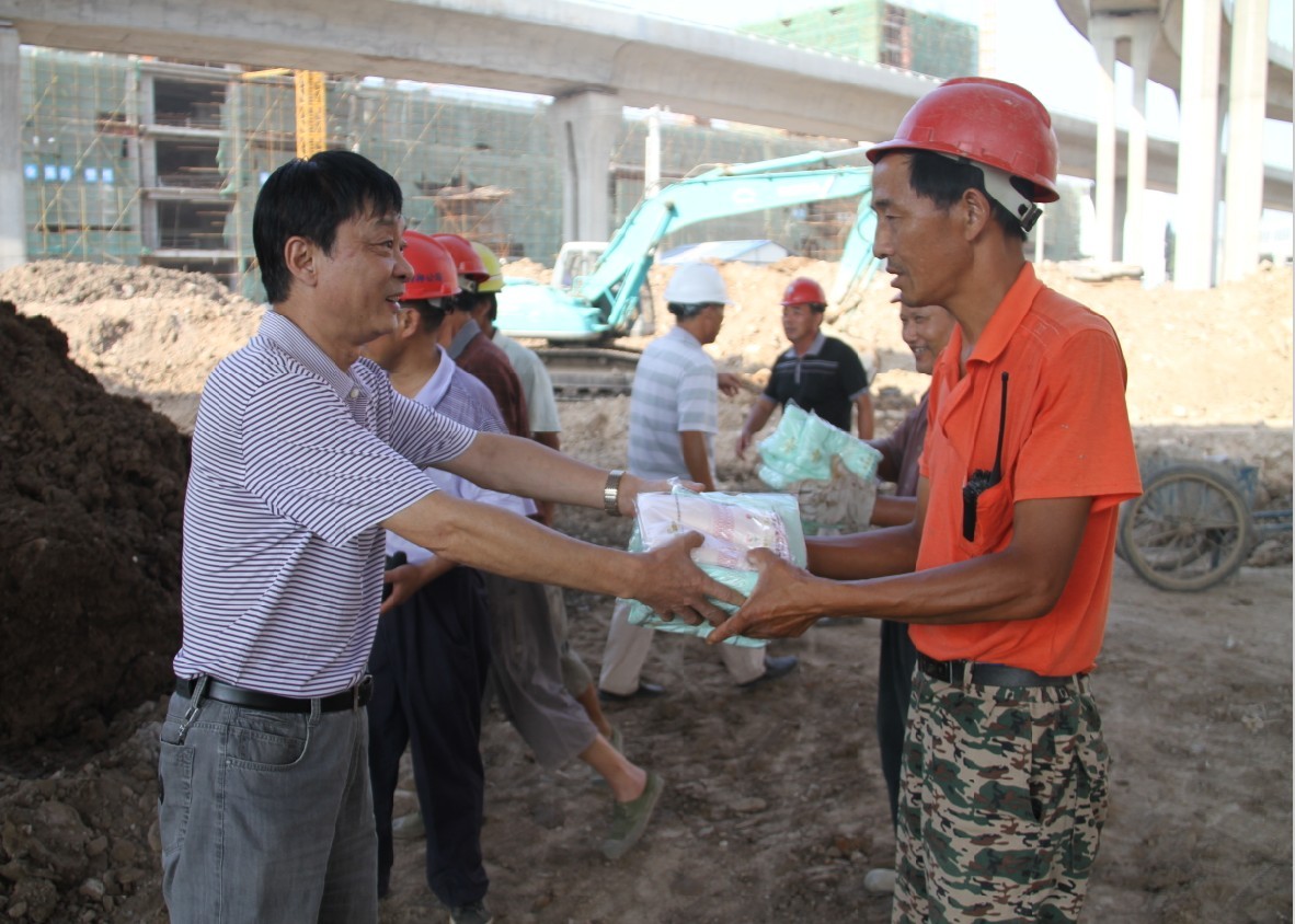 魯有月一行先后來(lái)到水東路、水東段、楊泗港快速通道四新段等項(xiàng)目現(xiàn)場(chǎng),看望慰問高溫季節(jié)仍?shī)^斗在工地的同志,將準(zhǔn)備好的綠豆、白糖、礦泉水、毛巾等消暑物資送到同志們手中,感謝大家為工程付出的勤勞與汗水,并叮囑大家要注意安全、保重身體,為建設(shè)再作新貢獻(xiàn)。