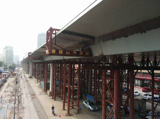 L29聯(lián)橫梁張拉施工 L31聯(lián)吊裝作業(yè)