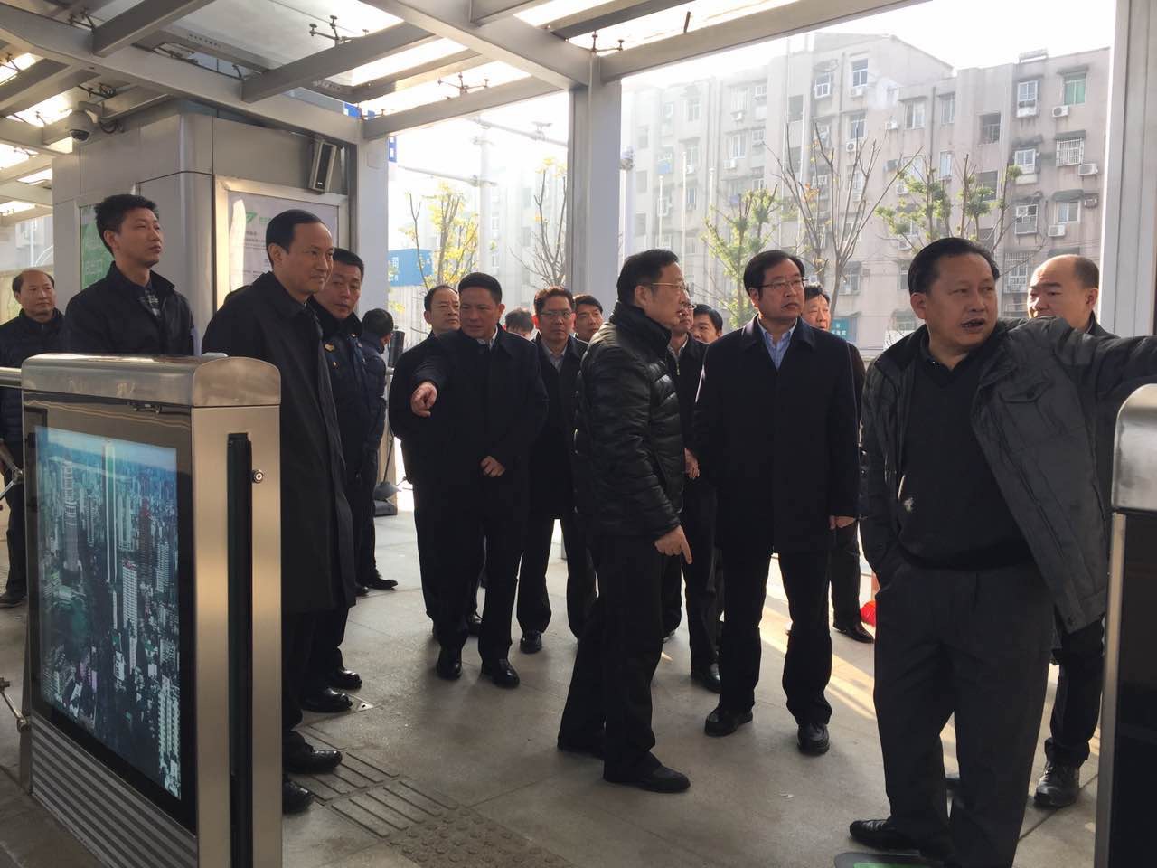 市領(lǐng)導(dǎo)一行乘坐試運(yùn)行公交車沿雄楚大街BRT檢查各個(gè)公交站臺(tái)的建設(shè)和調(diào)試情況,并對(duì)BRT開通后的交通組織方案和人行過(guò)街措施提出了具體要求。
