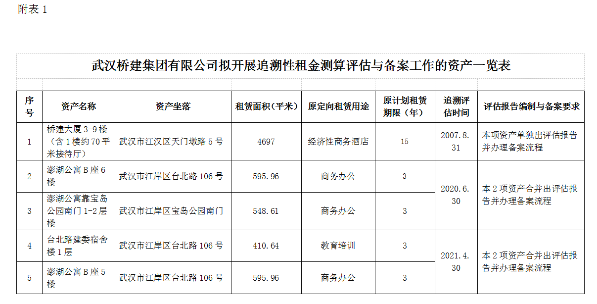 (一)嚴格按行業(yè)規(guī)范與標(biāo)準(zhǔn),對以上5項資產(chǎn),按附表1標(biāo)注的評估基準(zhǔn)日與報告編制要求進行歸類,總共需編制三項評估報告,即同一基準(zhǔn)日的項目統(tǒng)一出一項評估報告,但每份報告對當(dāng)年出租資產(chǎn)分別提供追溯性租金測算。